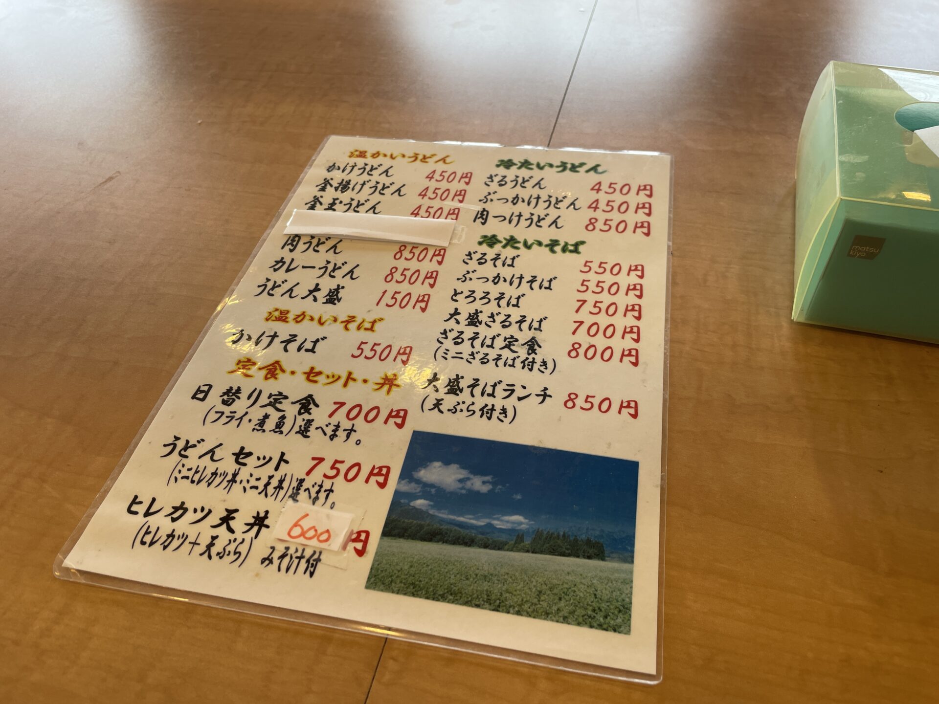 お店の本業「うどん」や「そば」メニューは450円から用意あり🌱